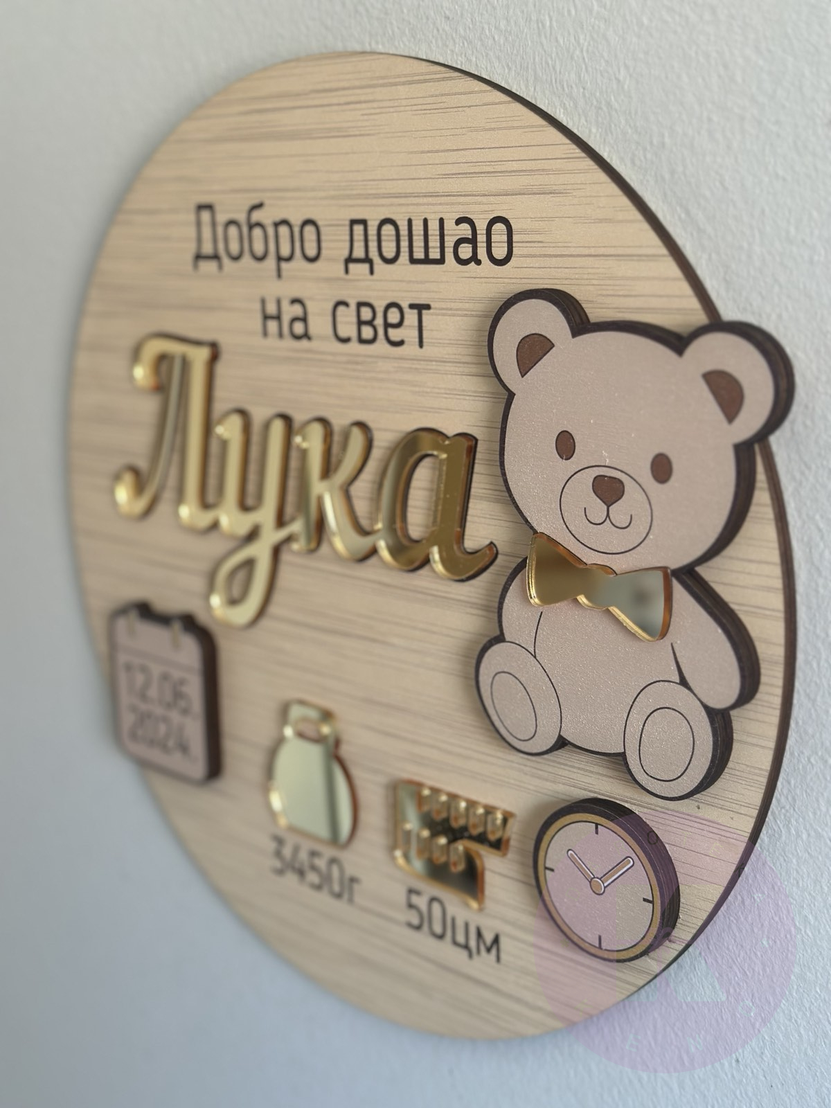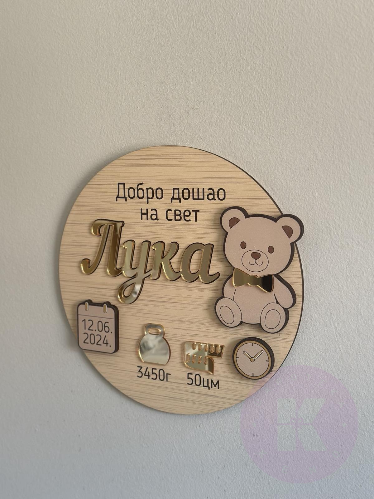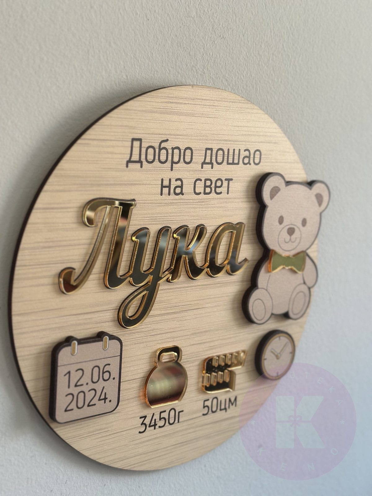 Krug ukras za zid sa medom, imenom po želji i podacima sa rođenja.