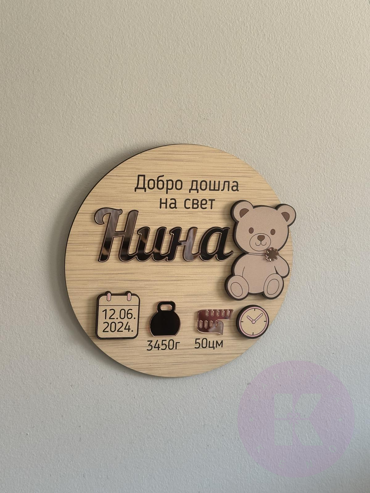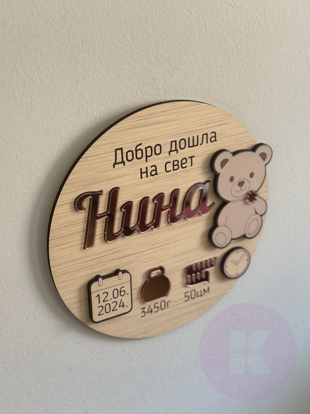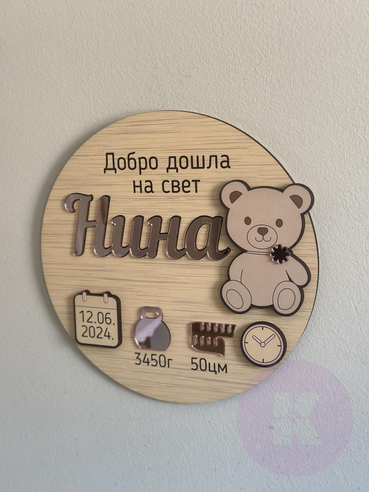 Krug ukras za zid sa medom, imenom po želji i podacima sa rođenja.