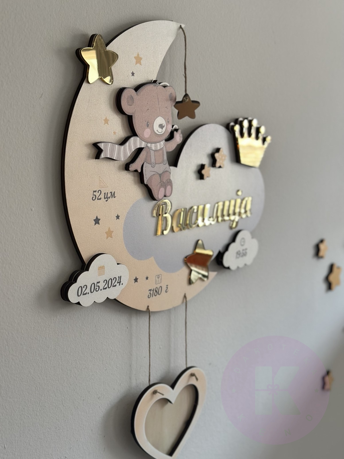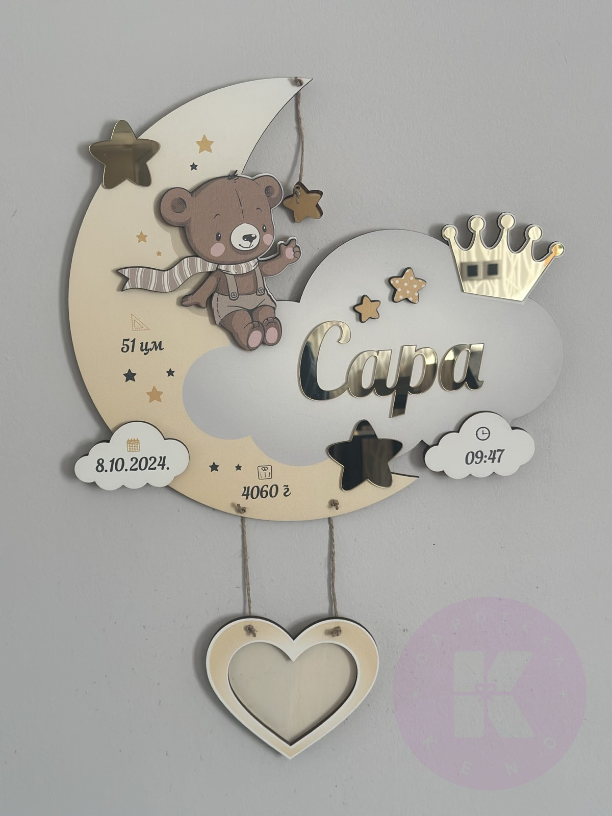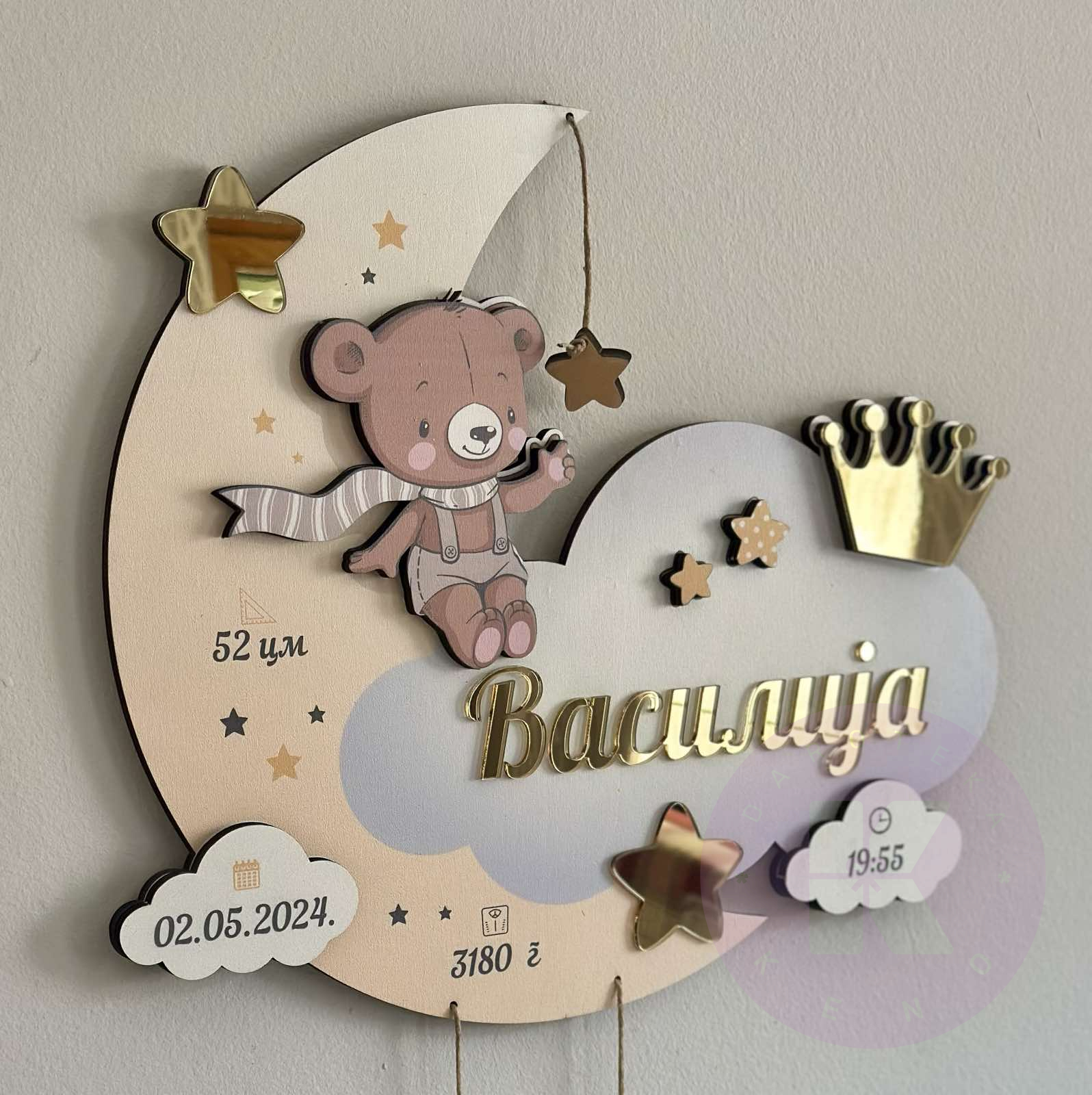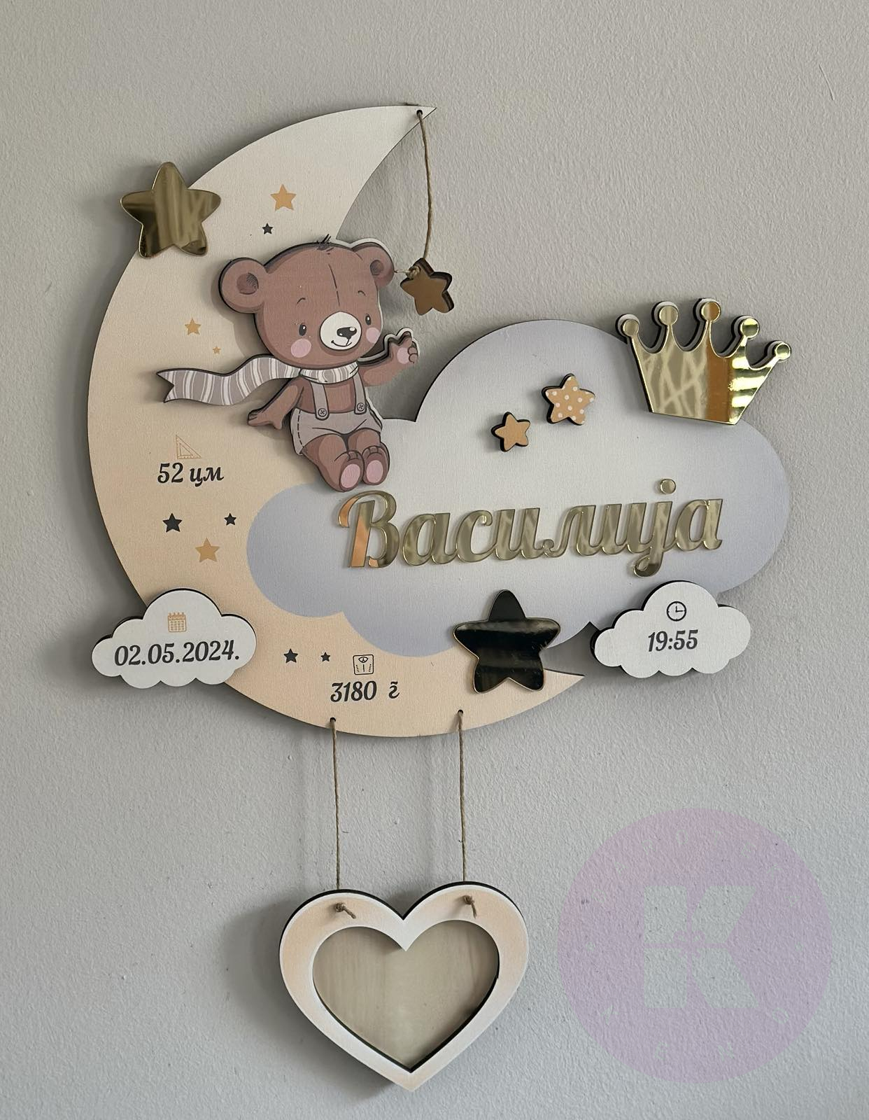 Zidni ram sa podacima rođenja i imenom po vašoj želji. Model pogodan i za devojčice i za dečake.