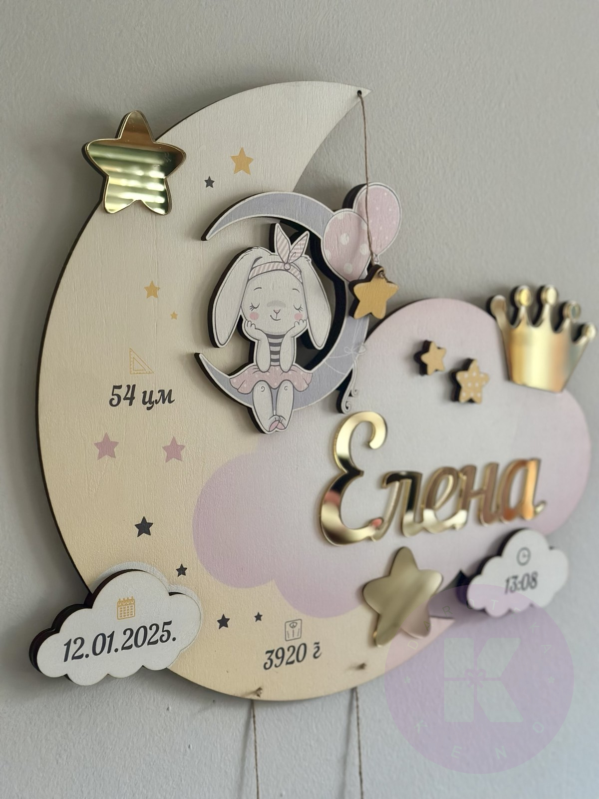Materijal: drvo + zlatno ogledalo slova