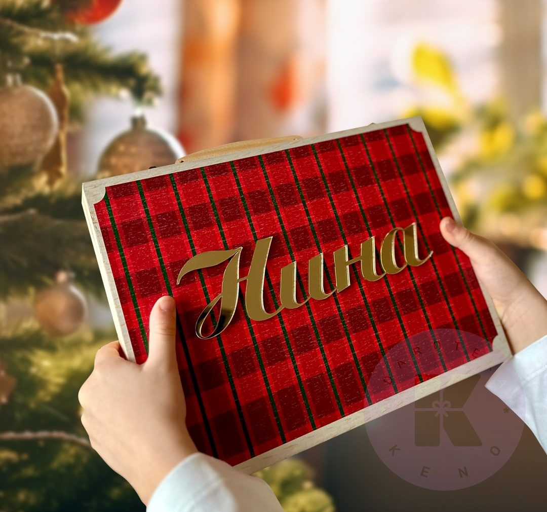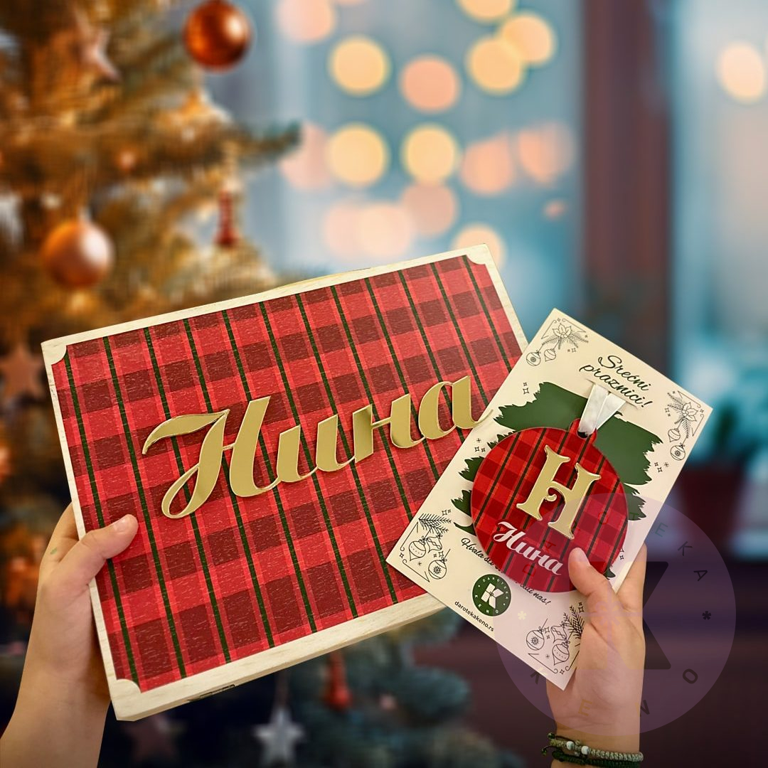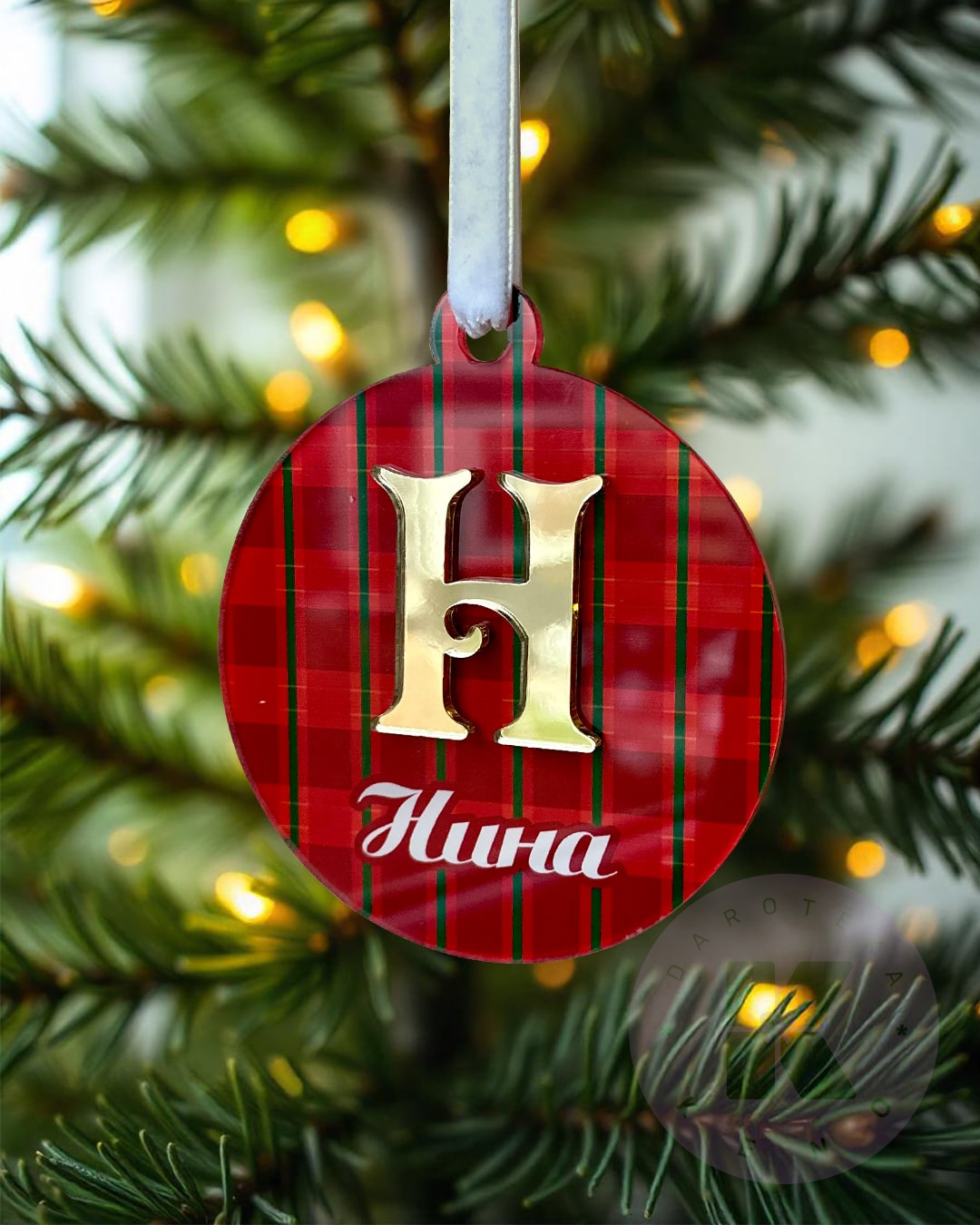 Ukras je sa imenom po želji. Napravljen je od providnog klirita sa štampom, dok je slovo od zlatnog ogledala klirita.