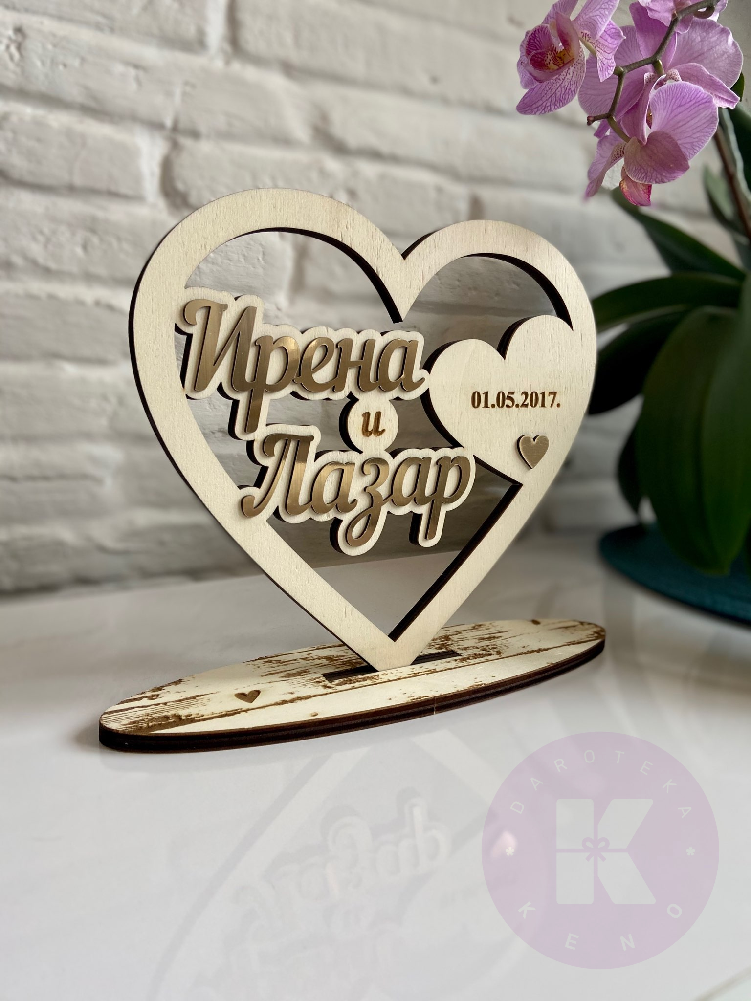 Ukras u obliku srca sa imenima Vas i Vaše voljene osobe sa motivima po vašoj želji.