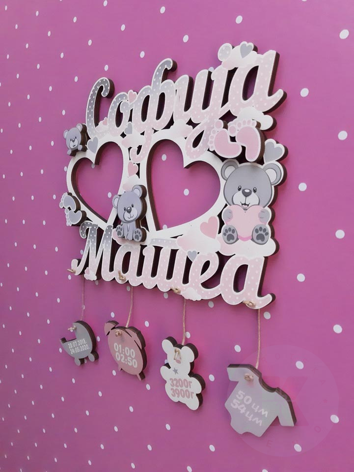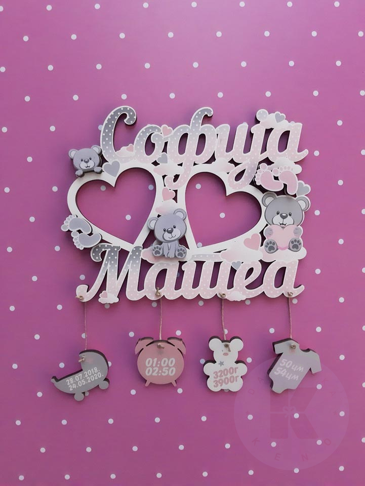 Zidni ram sa podacima rođenja i motivima po vašoj želji.