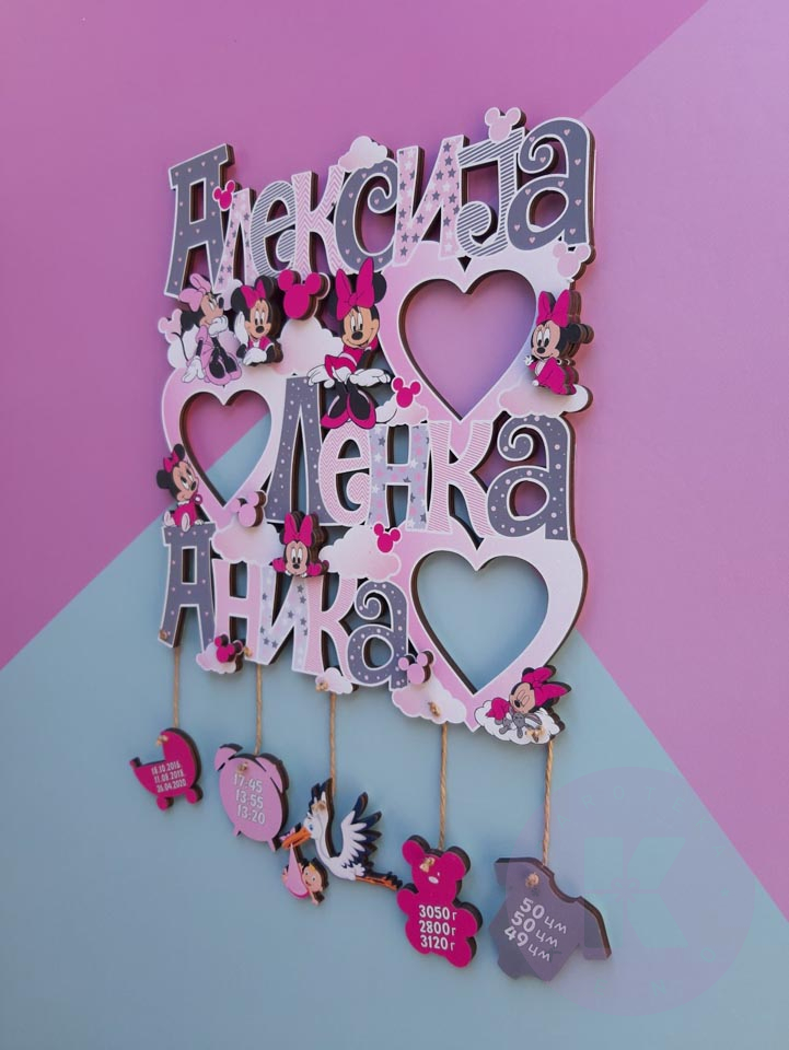 Zidni ram sa podacima rođenja i motivima po vašoj želji.